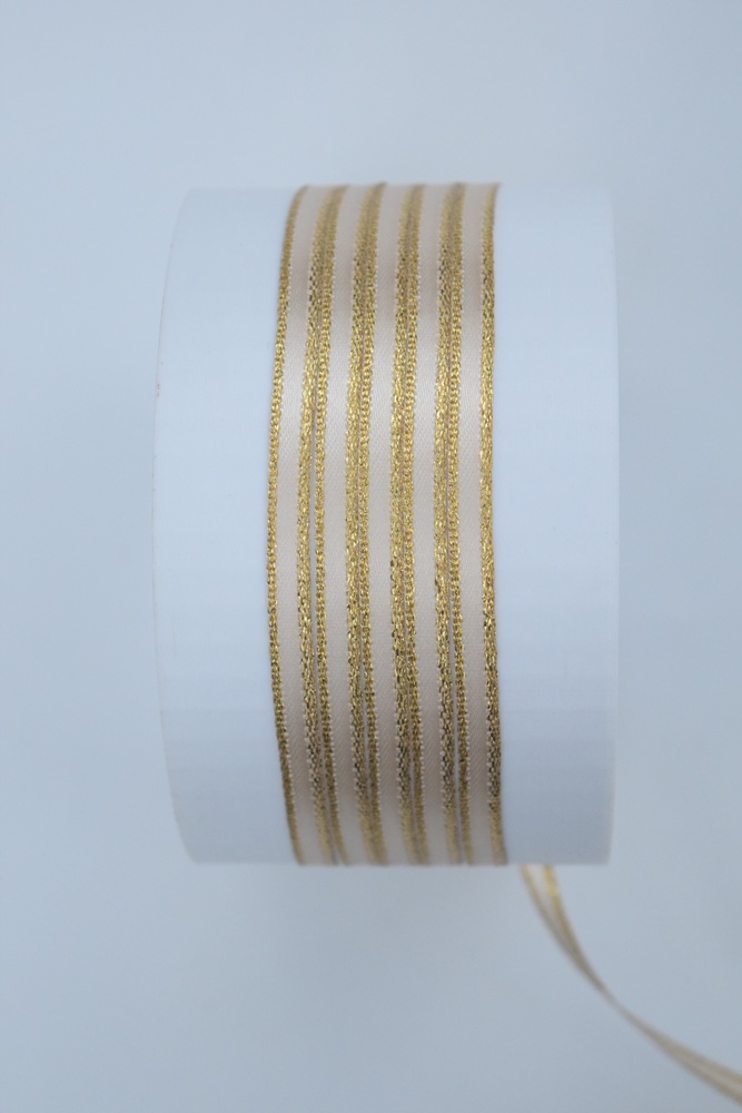 Cinta de raso de 4 mm color natural con bordes de lurex dorado.