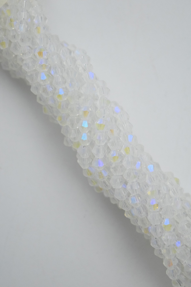 Tira de cristal de roca bicono 4 mm. color cristal AB.