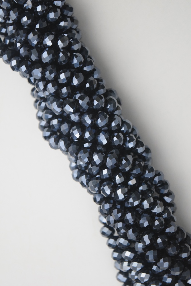 Tira de cristal de roca dona color azul noche metalizado.