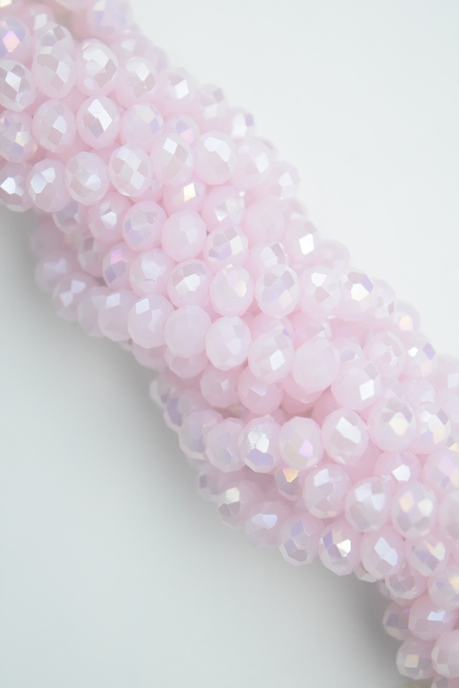 Tira de cristal de roca dona color rosa semi translúcido AB.