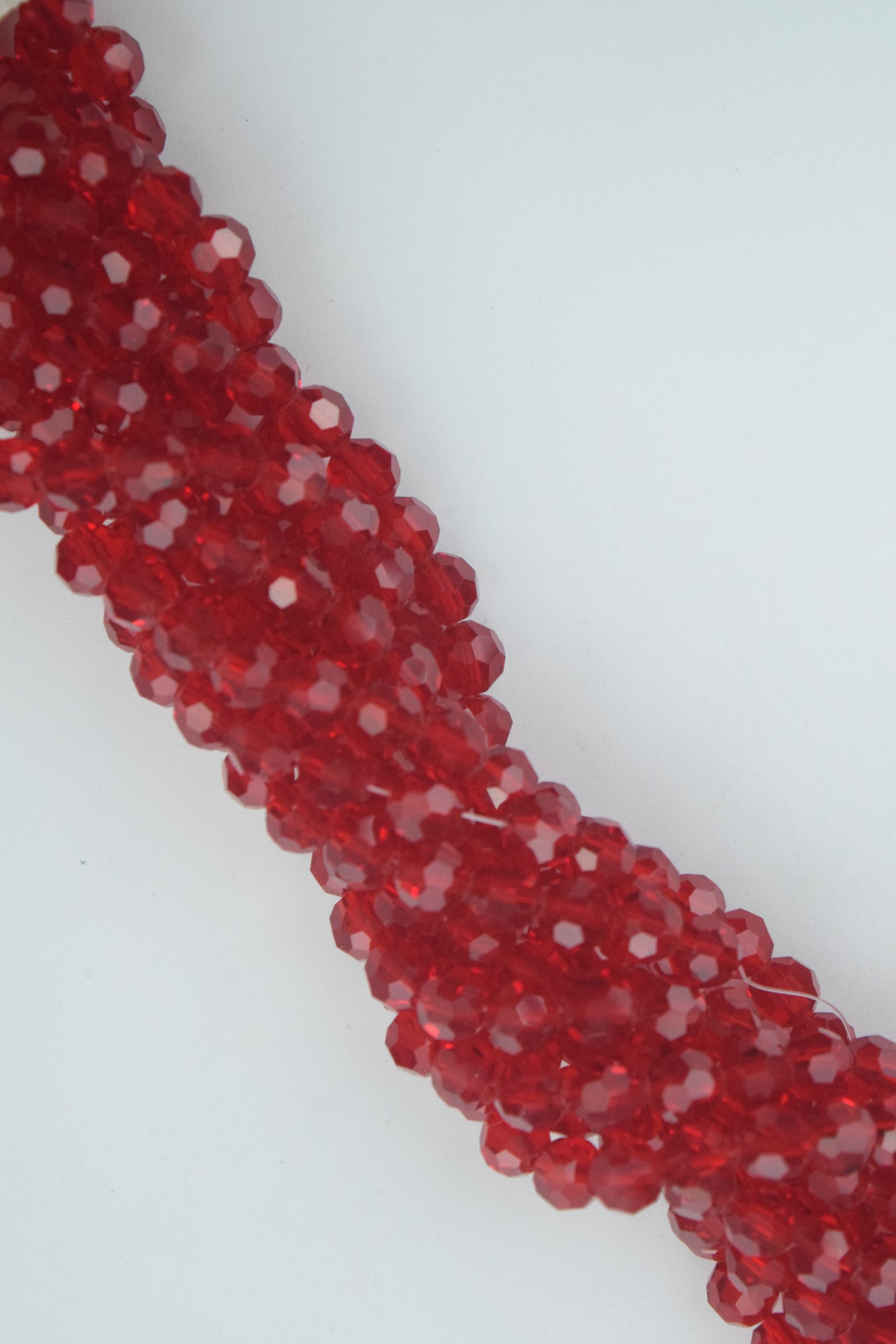 Tira de cristal de roca redondo 8 mm. color rojo translúcido.
