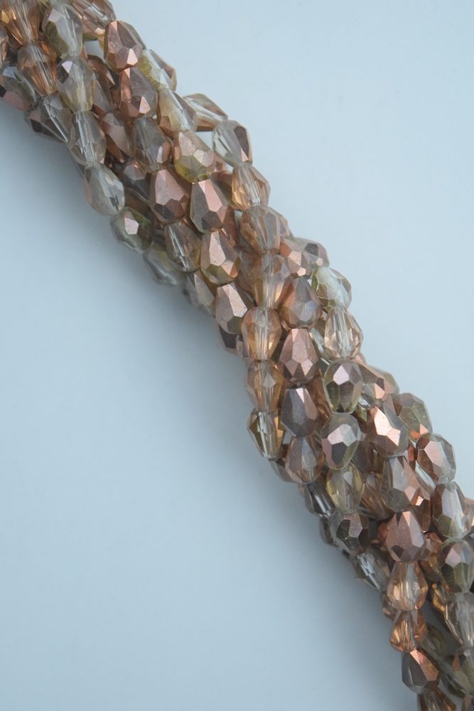Tira de cristal de roca lágrima pasante vertical color dorado 1/2 metalizado y 1/2 translúcido.