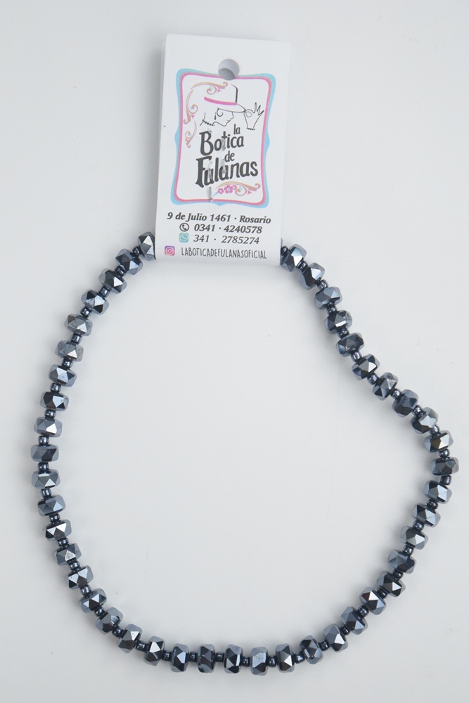 Tira de cristal de roca disco 8 mm. color azul noche metalizado.