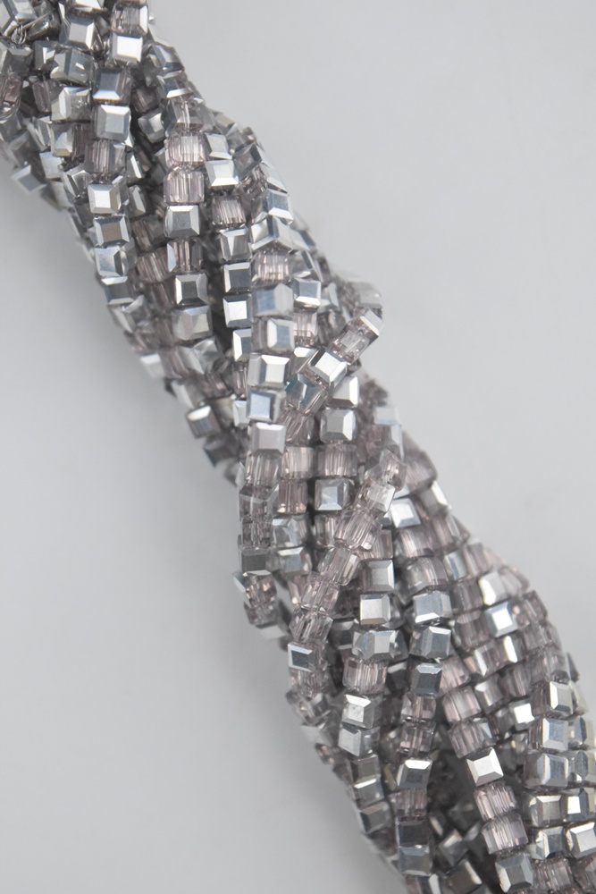 Tira de cristal de roca cubo color 1/2 plateado metalizado y 1/2 rosa translúcido.