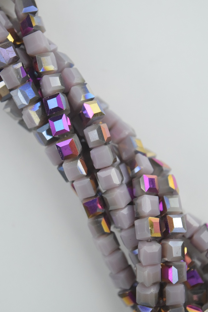 Tira de cristal de roca cubo 6 mm. color 1/2 lila y 1/2 multi.