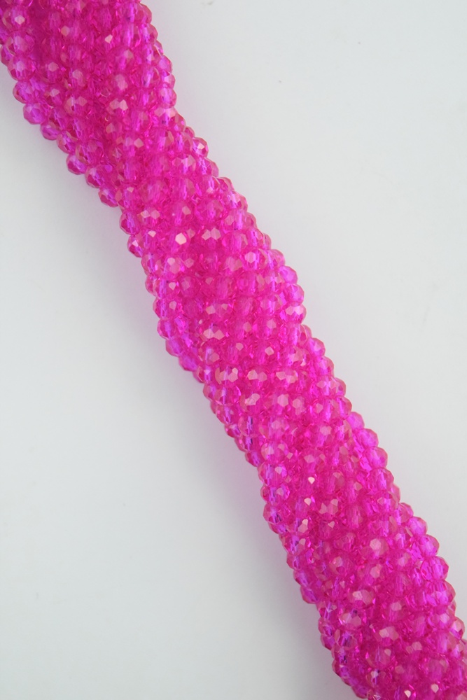 Tira de cristal de roca dona 4 mm. color fucsia translúcido.