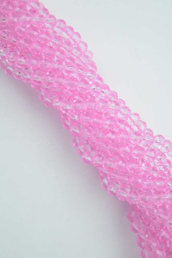 Tira de cristal de roca dona color rosa translúcido.