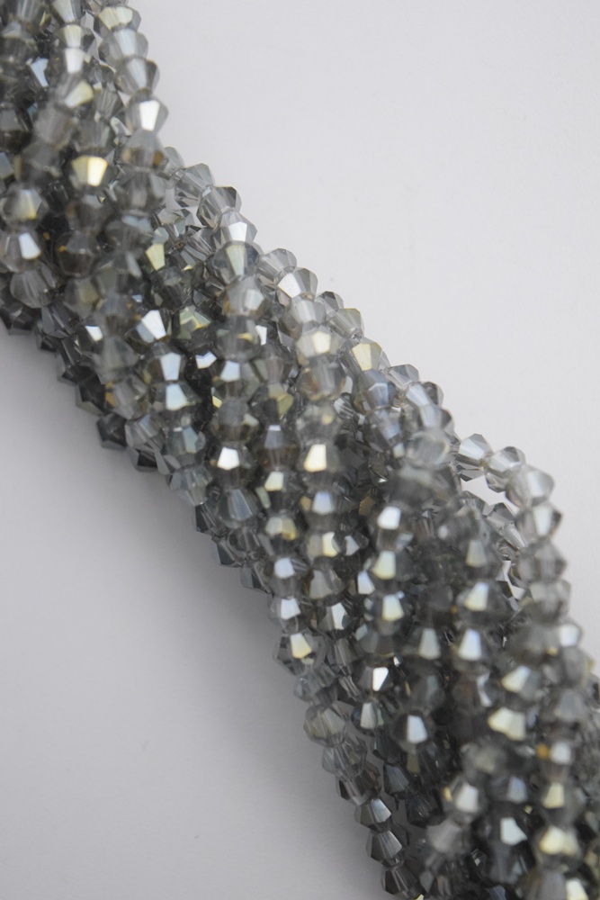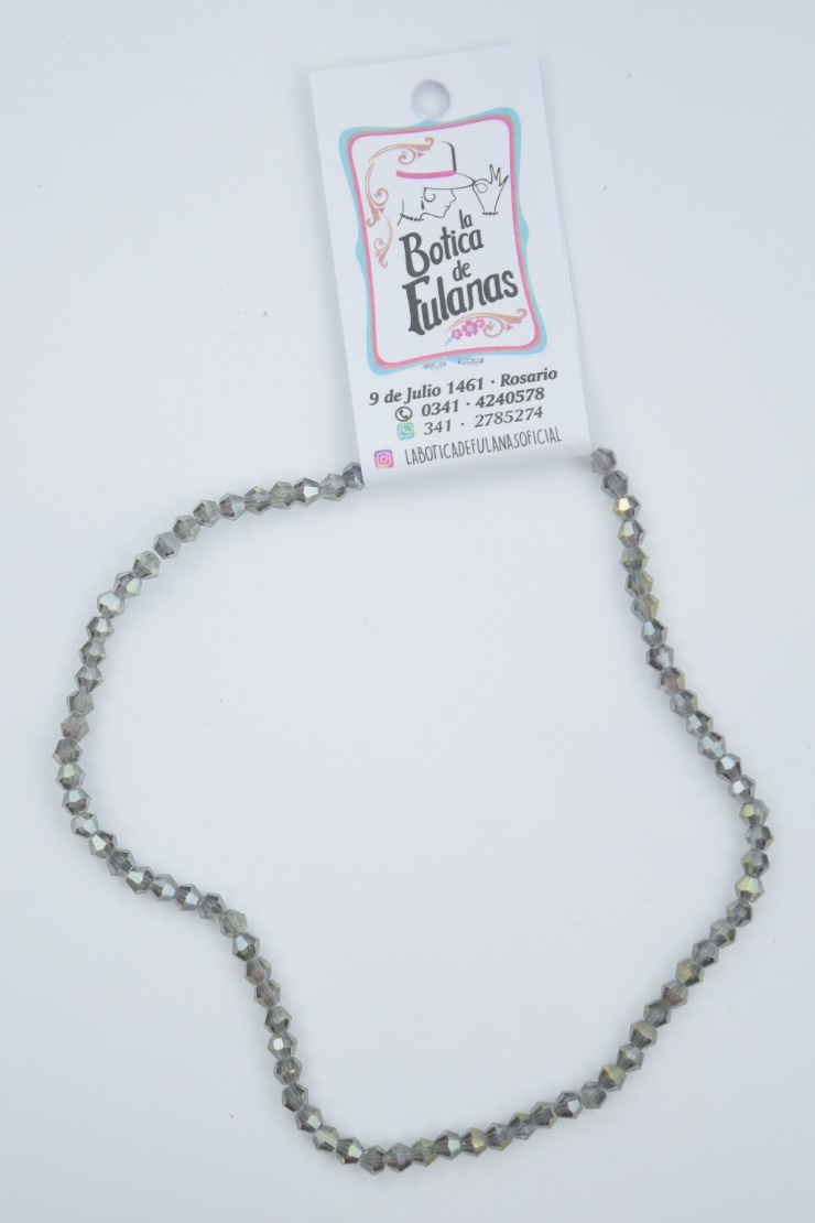 Tira de cristal de roca bicono 4 mm. color humos translúcido.