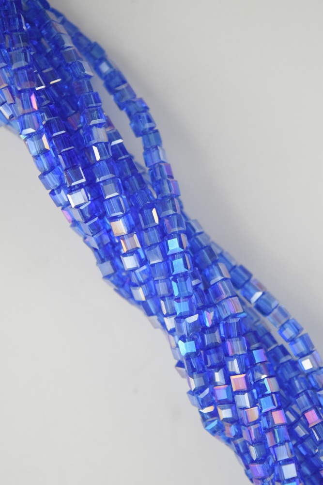 Tira de cristal de roca cubo 3 mm. color azul translúcido.