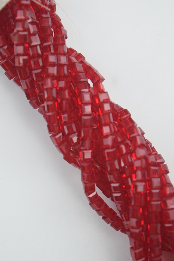 Tira de cristal de roca cubo 3 mm. color rojo translúcido.