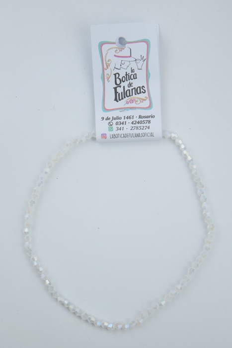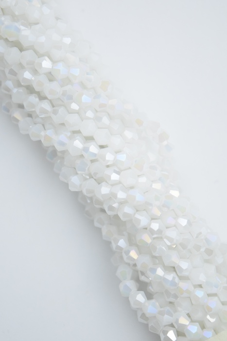 Tira de cristal de roca bicono 4 mm. color blanco semi translúcido AB.