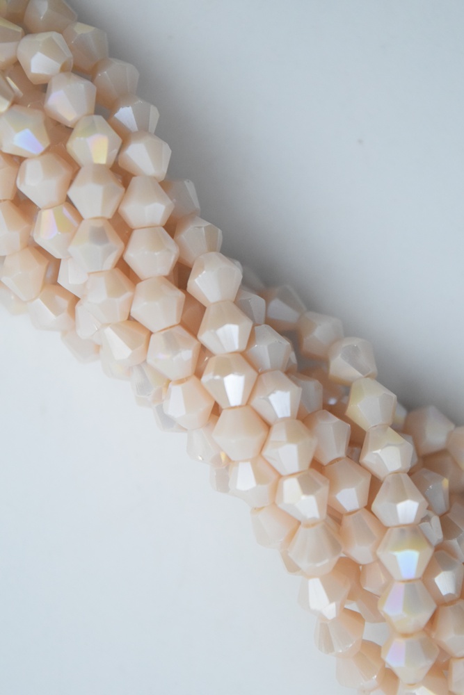 Tira de cristal de roca bicono 6 mm. color nude AB.
