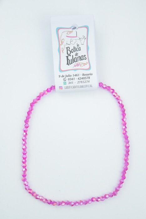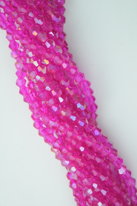 Tira de cristal de roca bicono 4 mm. color fucsia translúcido.