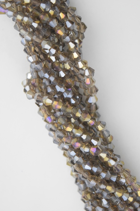 Tira de cristal de roca bicono 4 mm. color humo translúcido AB.