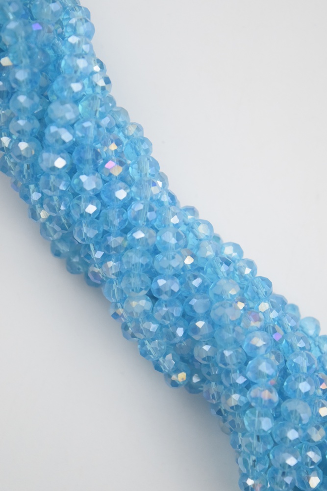Tira de cristal de roca dona 6 mm. color celeste translúcido AB.
