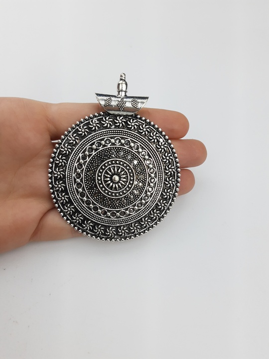 Dije con contrargolla de fundición con forma de medallón níquel.