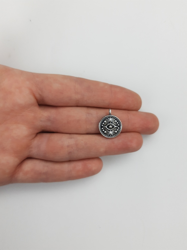 Dije con contrargolla de fundición con forma de Ojo turco níquel.