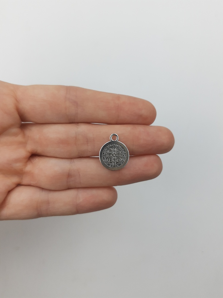 Dije de fundición con forma de San Benito níquel.