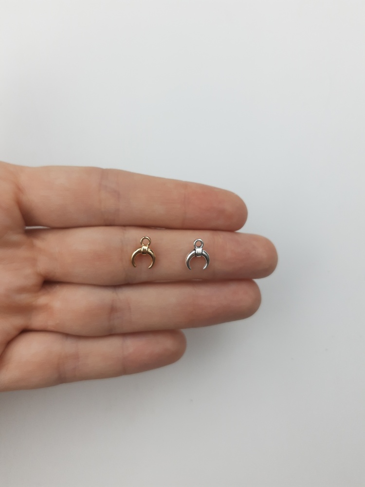 Dije de fundición con forma de luna invertida dorado y níquel.
