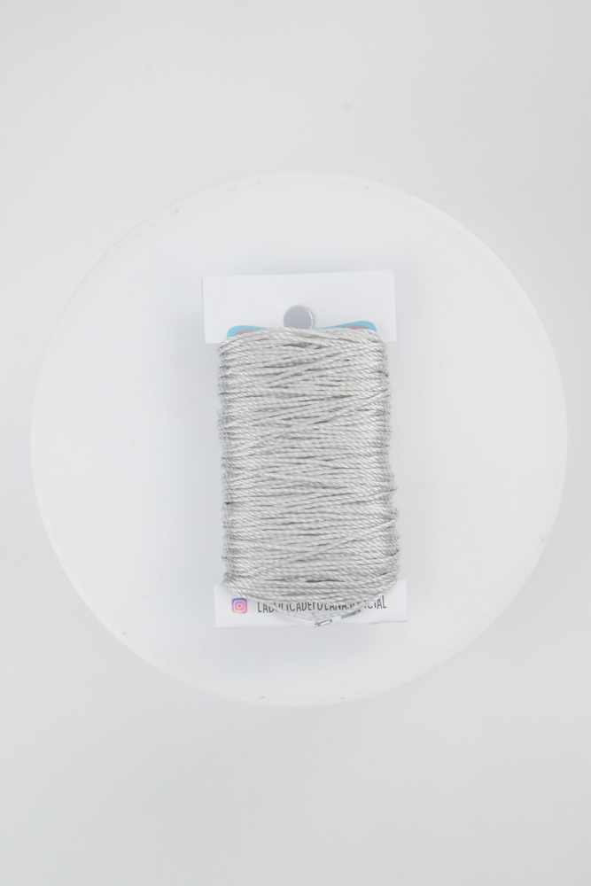 Hilo de poliéster color gris perlado.