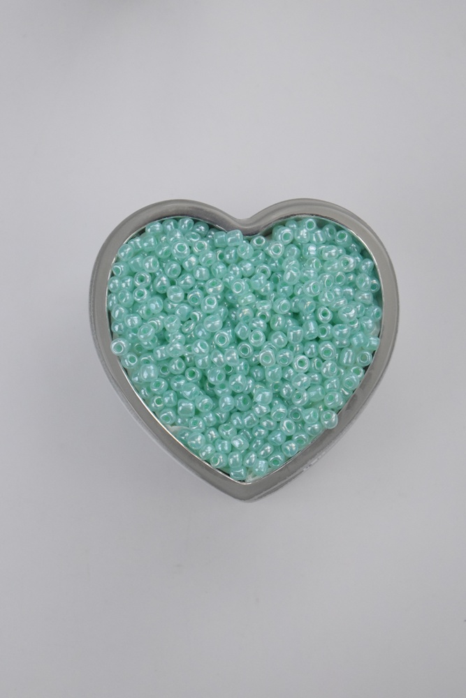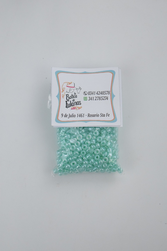 Mostacillón de vidrio perlado n° 4 mm. color verde aguamarina.