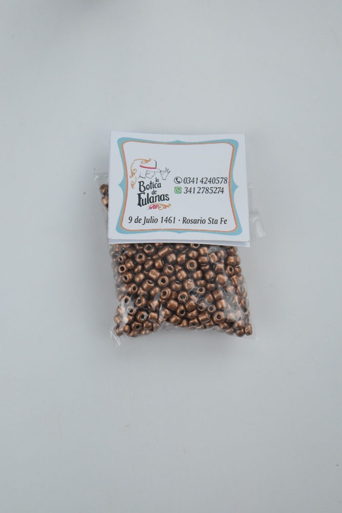 Mostacillón de vidrio metalizado n° 4 mm. color cobre.