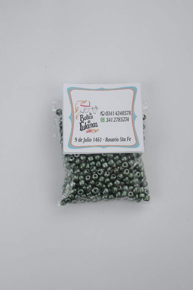 Mostacillón de vidrio metalizado n° 4 mm. color verde.