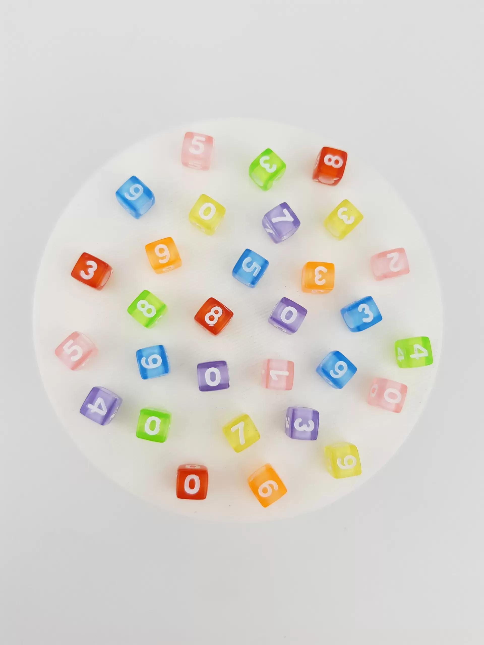 Pasantes transversales de acrílico en forma de cubos con números.