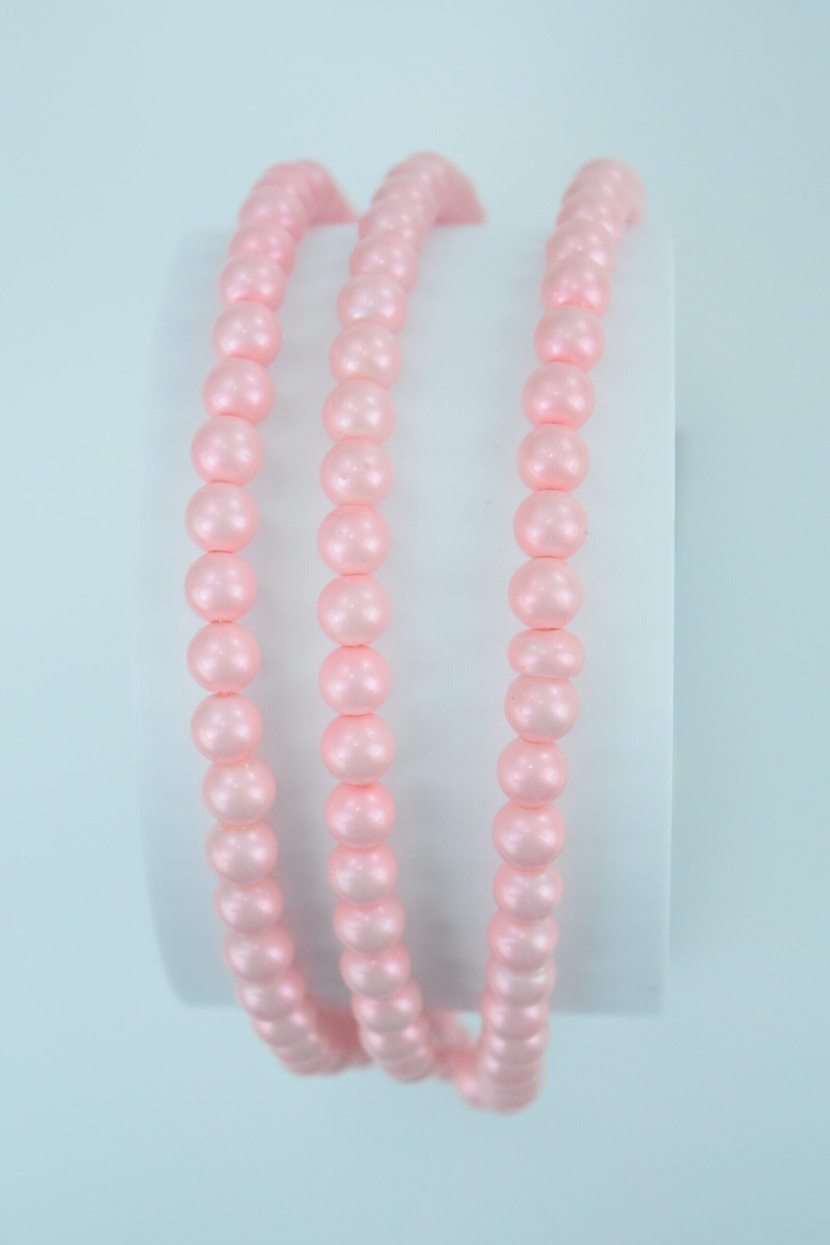 Tira de perlas de vidrio satinadas color rosa chicle con AB (aurora boreal).