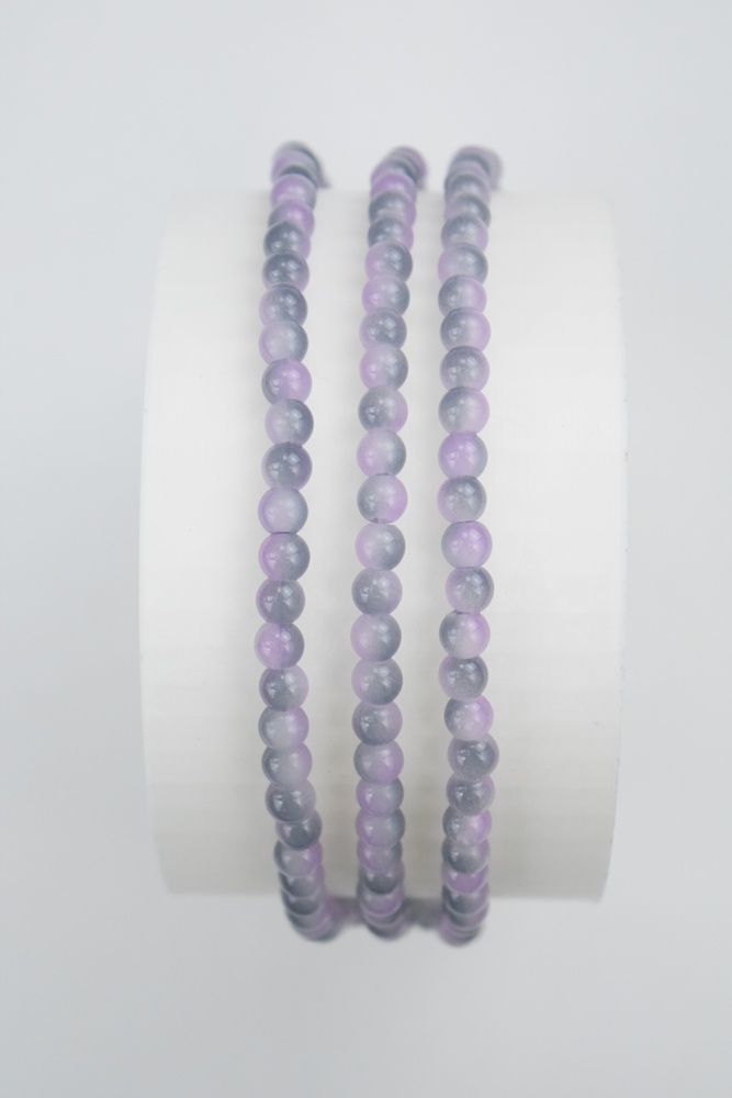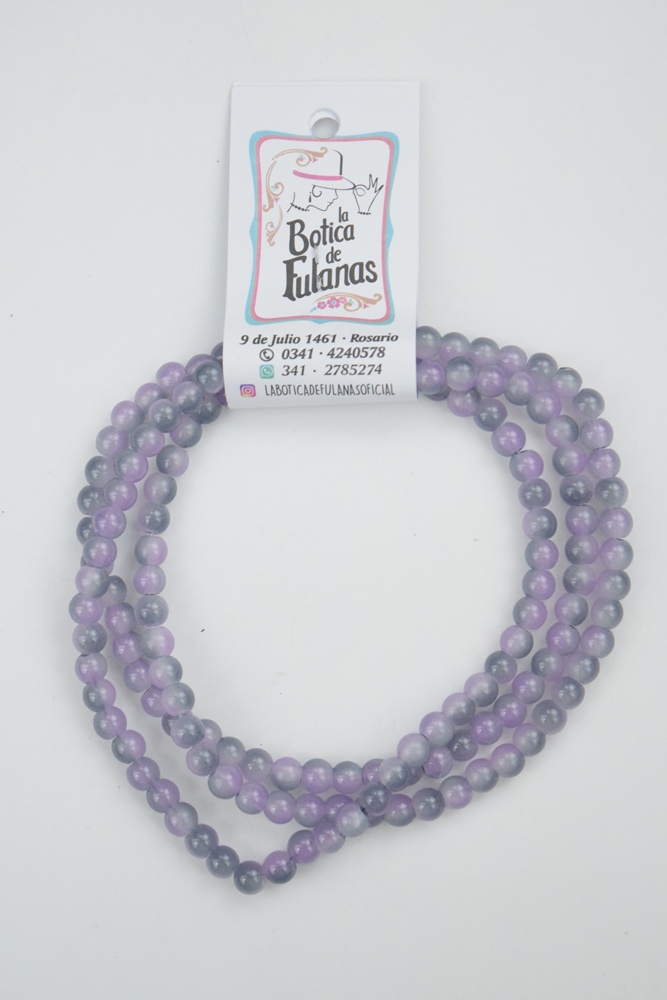 Tira de cuentas redondas de vidrio estallado de 6 mm. bicolor violeta y gris.